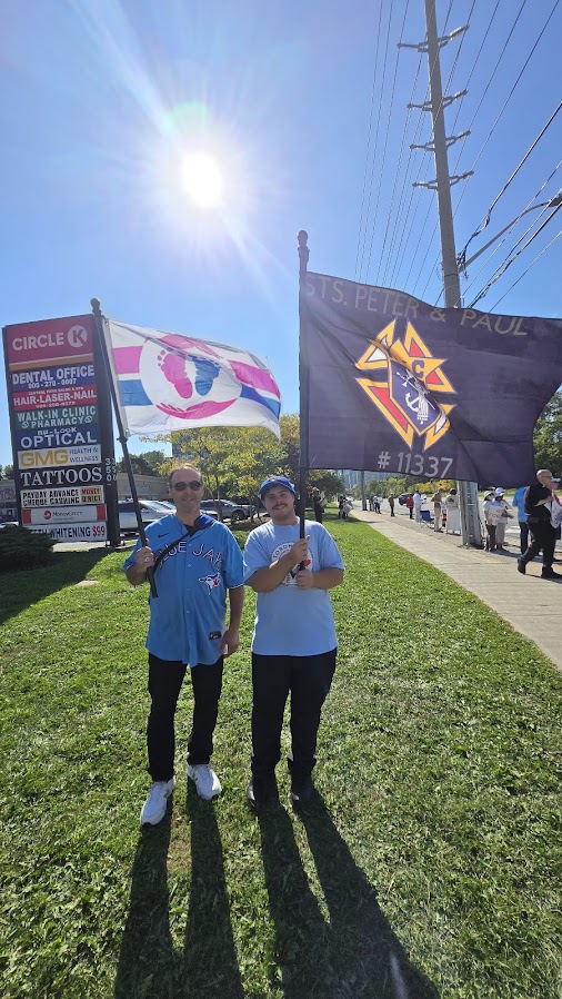 Ani Kaluzny 2025-10-05T00:00:00+00:00Submitted by Fred PolicarpioSts. Peter & Paul CouncilFather & Son Knights, Deano Demelo on the left and his son Michael Demelo on the right. Deano is carrying the Life Flag & Micheal carrying the Knight's emblem flag for Sts. Peter & Paul's Life Chain in Mississauga, Ontario, Canada. On Sunday October 5th from 2-3pm.