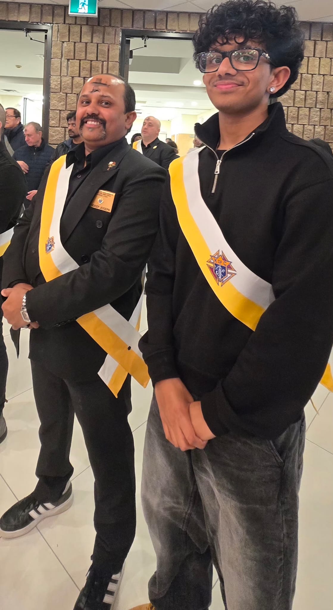 Father & Son Br. Knights helping for Ash Wednesday Mass.