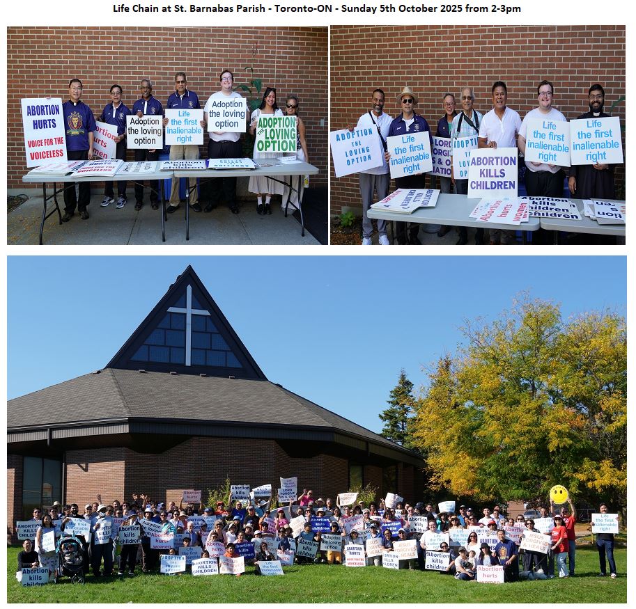 Ani Kaluzny 2025-10-05T00:00:00+00:00Submitted by Y. FernandesSt. Barnabas CouncilMembers of St. Barnabas Council 13785 participated in a peaceful Life Chain at the four intersections in front of St. Barnabas Parish on Sunday 5th October 2025 from 2-3pm. Brother Knights distributed the placards to parishioners, monitored the crowd and collected the placards thereafter. There were close to 200 parishioners that attended the event. Thanks to all brother knights that volunteered and supported the event,